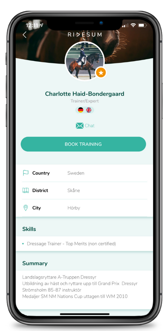 ”Det som jag tycker är jättebra är att man tänker mycket mer på miljön, jag måste inte ta två gånger flyg fram och tillbaka utan jag kan sitta hemma där jag dessutom hinner med mycket mer men ha samma effekt genom Ridesum genom att ge träning digitalt. Ska jag resa tar det så många timmar av min arbetstid så denna lösning tycker jag är fantastiskt bra. Har jag träningar i Norrland som vi hade nu så hinner jag ju även rida mina hästar här hemma samma dag, jag behöver inte välja bort något av det och det är jätteskönt för mig.”